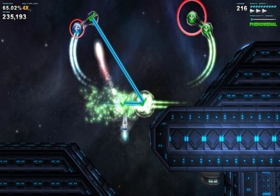 Rhythm Destruction to gra rytmiczna / shoot em up (shmup). Zainspirowana klasykami takimi jak Ikaruga i nasycona intensywnością uzależniającej rozgrywki rytmicznej, nie przypomina niczego, w co kiedykolwiek grałeś. Przebij się przez 10 ekscytujących i wymagających etapów, napędzanych dźwiękami optymistycznej muzyki elektronicznej.