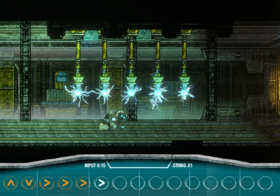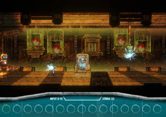 Escape String is a 2D puzzle game in which a small humanoid robot awakens in the rubble of a landfill inside a large factory. The robot receives cryptic messages from an unknown helper and must explore the factory in search of answers about his own identity and that of his distant contact.
