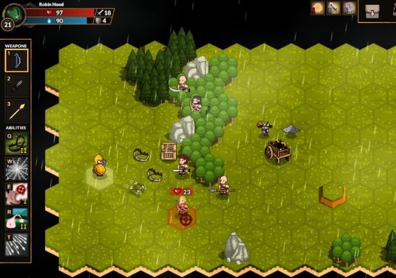 As the chosen Hero you will embark on an unexpected journey, travelling from place to place, fight monsters, deal with bandits, encounter feral creatures, loot items to equip or sell, trade goods in towns to get better equipment and profit, accept jobs for money and reputation, face numerous unique events! Gain experience from skirmishes to learn/upgrade spells and abilities.