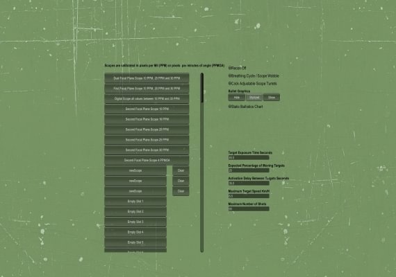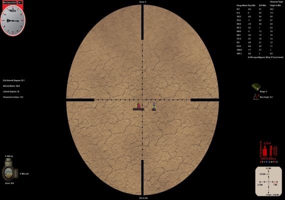 The scope reticles in Expert Rifleman are calibrated in Mil-rads or MOA and function identically to the real thing. Learn how to use a reticle to range targets and calculate hold over.