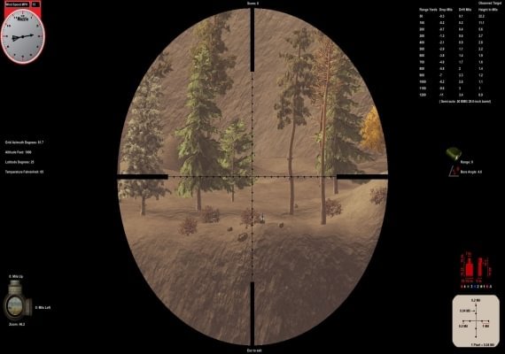 The simulation allows the user to compensate for the forces which affect the path of the bullet. Vegetation sways and bends and particles follow the wind currents. You can visualize wind direction and intensity. Compare ammunition based on ballistic performance. The only thing which Expert Rifleman cannot do is teach you how to pull the trigger!