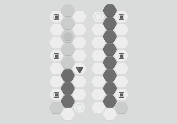 Hexa Turn is a 2D puzzle game that offers simple turn-based gameplay. You will strategically turn hexagons to block triangle's way to the squares.