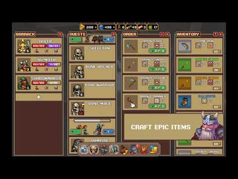 Un mélange de systèmes RPG traditionnels, de mécaniques tycoon et d'un monde fantastique. Vous gérerez une équipe de héros, d'artisans et votre propre château. Les héros sont envoyés en mission pour combattre des ennemis et rassembler des matériaux. Les artisans utilisent ensuite ces matériaux pour créer des armes et des armures. Le château peut être amélioré pour servir de terrain d'entraînement ou d'organisateur de fêtes pour vos héros. Après avoir fabriqué vos nouveaux objets brillants, vous pouvez les vendre ou les offrir à vos héros préférés.