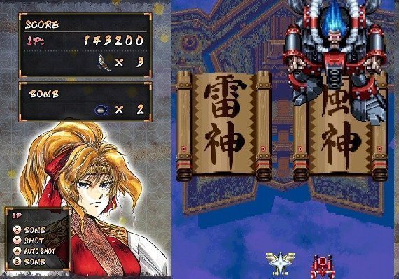 Samurai and ninja fly in the sky! Freaky Japanese-style shooter known as the debut of "Psikyo".