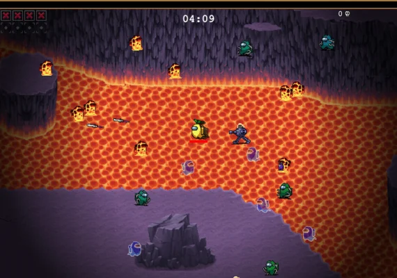• Multiple playable Crewmate characters with distinctive abilities and starting weapons