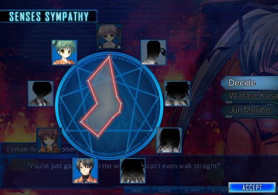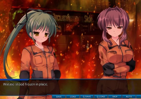The story of Root Double features two different protagonists: Watase Kasasagi, a rescue squad captain who has lost his memories in the hours after the incident, and Natsuhiko Tenkawa, a student piecing together the clues in the six days before. The only key to survival lies in the player’s hands with the Senses Sympathy System (SSS). Unlike traditional visual novels, Root Double does not have clear cut “choices,” but rather, the game uses SSS to allow the player to manipulate the story based purely upon emotion. Your emotions projected upon the characters, particularly your trust in them, shape the progression of the story. Only with effective use of this system and completion of both protagonists’ stories can the player piece together the truth and hope to discover a way out of the facility.