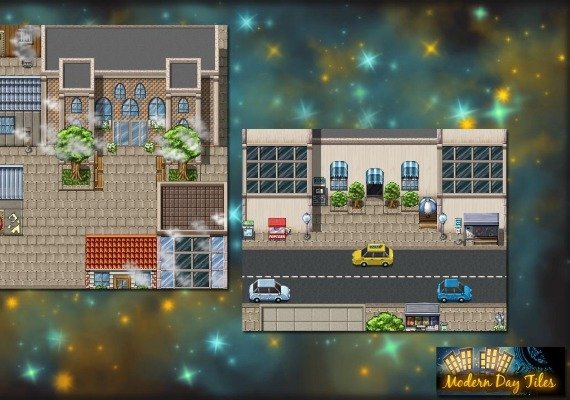Dreaming of building a sprawling modern city? How about a modern apartment for your hero? With Modern Day Tiles Resource Pack, all this is possible - and more! Add a bit of modern flair to your games with everyday objects and technology. Create urban zones and pleasant homes in a style that complements RPG Maker VX-Ace's default art.