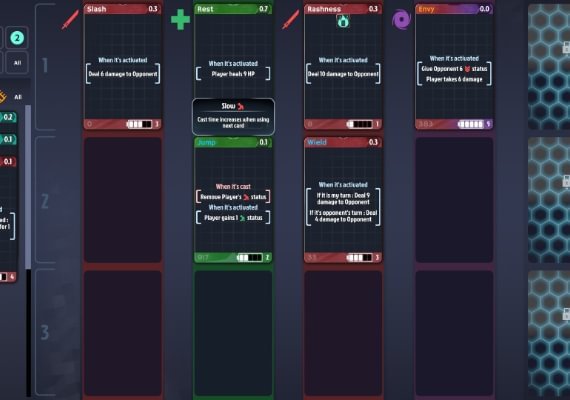 - Three characters starting with different weapon sets. The story differs/changes depending on the 18 starting card presets.