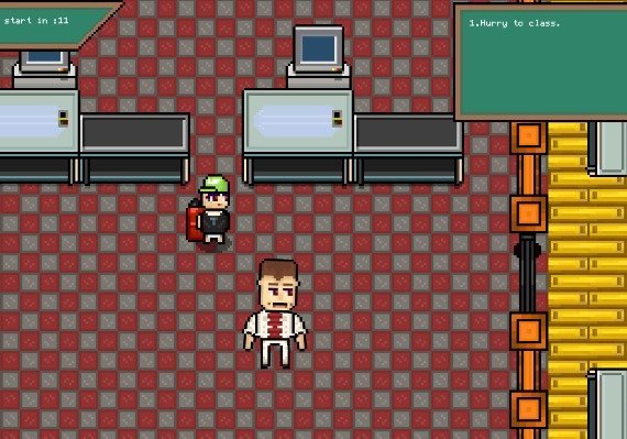 Become a pupil in a very odd school that can teach you while both entertaining and frightening you! Make new friends and laugh with them, teach your enemies a lesson or... participate in one. You can customize your student by clothing them in various outfits before sending them off to school by bus! You move between areas executing one or more actions in this 2D quest game. By granting their requests, you can interact with the nearby characters. The game also includes a number of minigames to break up the gameplay.