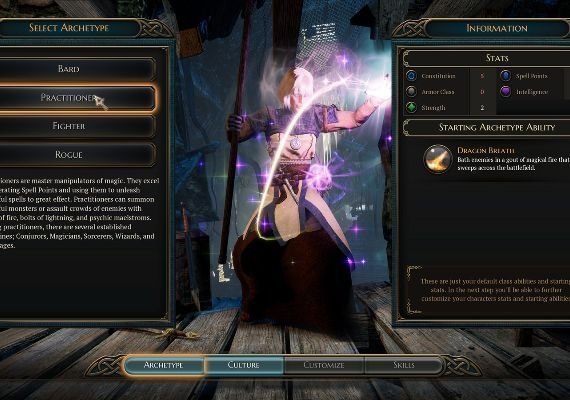• Play as Bard, Fighter, Practitioner, and Rogue. Each archetype features 60-70 skills and collectively they unlock 21 unique classes. Build an array of characters to make each playthrough a unique experience.