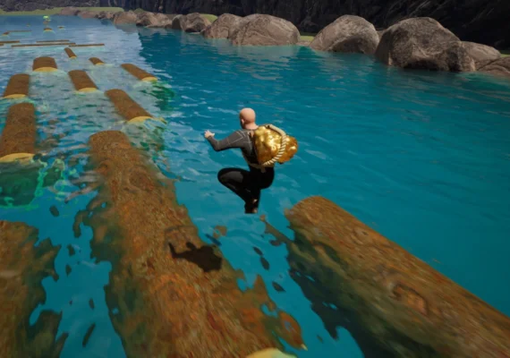 Get ready for an exciting arcade-style adventure in The Gold is Mine! You play as a fearless miner who just struck it rich — but now the real challenge begins. After discovering a massive gold nugget, you must race across a treacherous river to reach your boat and escape with your newfound fortune.