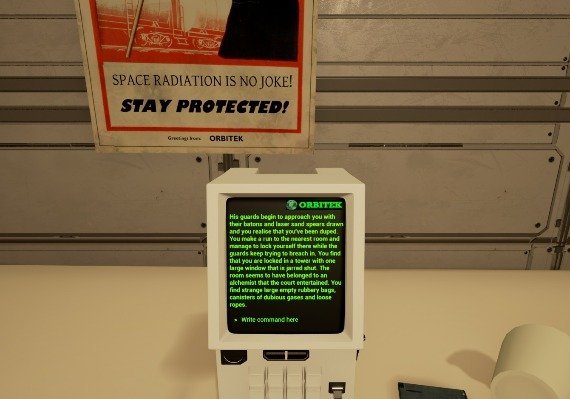 During each playthrough, the player experiences the last few days of the prisoner's sentence in orbit. The prisoner performs his daily routines onboard the vessel and follows the orders of an Orbitek warden given through an intercom. That is of course, if you choose to follow them. The missions vary greatly from general maintenance tasks to daring and valorous exploits! In between them, the player can explore the inmate module he is trapped in. The game has many varying endings and with each playthrough, the experience differs.