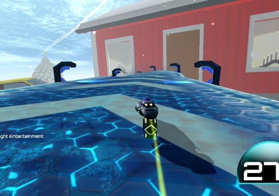 It's on this trail that the other players race each other. The Pavers goal is to create a road so difficult that the other players fall too far behind and get eliminated, while the Racers aim is to be the first to catch up with the Paver. To create more exciting and difficult tracks, the Paver can pick up powerups in the surroundings, including narrow roads and obstacles.