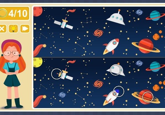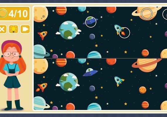 In "Viki Spotter: Space Mission", this little girl will go on a space trip and see a lot of new and interesting things. However, there are a lot of inconsistencies in the images received by her and it is up to you to find them. The gameplay consists of constant comparison of different images and search for different parts.