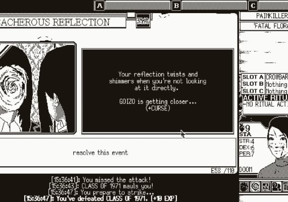 This is WORLD OF HORROR: The end of the world is nigh, and the only solution is to confront the terror reigning over the apocalypse. Navigate this hellish, roguelite reality through turn-based combat and unforgiving choices in this roguelite-style cosmic horror RPG.