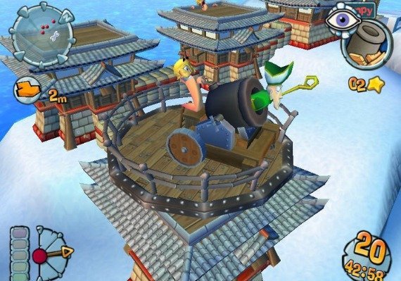 Worms Forts: Under Siege! puts you in command of a team of up to four fort-dwelling worms. The game is set wacky 3-D cartoon environments, and you must command your worm garrison to quickly construct defenses to maximize your strategic advantage. Direct your worms to expand your castle and seize valuable resources. Have them build weapons of mass destruction to destroy your opponents' fortifications. Test yourself against the single-player game by battling through the 20 missions, and then lay siege against your friends via hotseat, LAN, or FortNet multiplayer! Now who’s king of the castle? Prove your worth in Worms: Fort Under Siege!